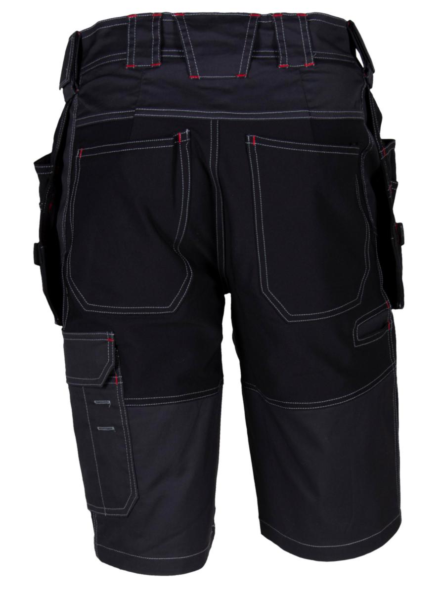 Håndverksshorts med paneler i 4-veis stretch for best mulig bevegelsesfrihet. Metervare med DURACLEAN teknologi som avviser smuss og de fleste vann- og oljebaserte væsker. To-nålssøm i ben, lommer og skritt. Gylf med YKK® glidelås, knapp i linning. Brede beltehemper. Hempe med borrelås til hammerholder i begge sider i linning. To forlommer. To baklommer. Lårlomme med klaff med borrelås og innvendig ID-kortlomme, utvendig mobiltelefonlomme, liten lomme og pennelomme, delvis festet for best mulig bevegelsesfrihet. Tommestokklomme forsterket med nylon og dobbel bunn, knapp og hempe for kniv og utvendig lomme, delvis festet for best mulig bevegelsesfrihet. Hengelommer i nylon forsterket med dobbel bunn. Høyre hengelomme med ett fakk, tre hylsterlommer og tre hemper. Venstre hengelomme med ett fakk, tre hylsterlommer og tre hemper.